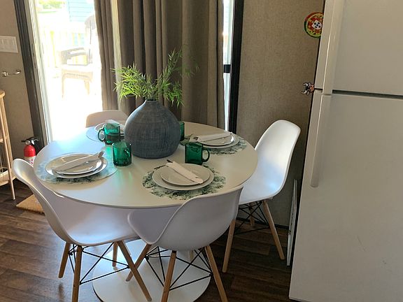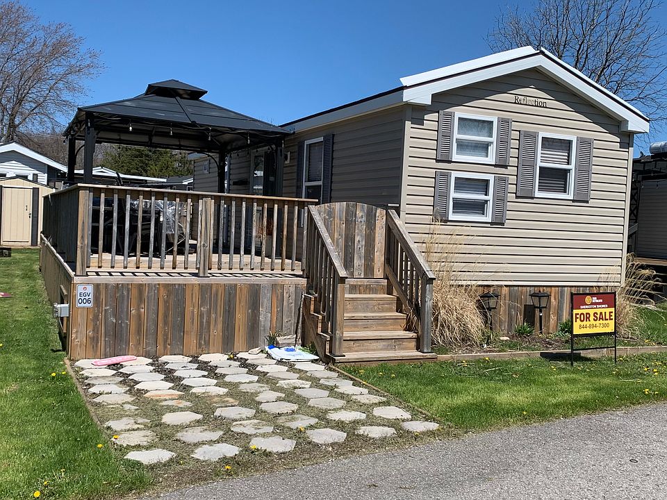 Welcome to Evergreen Village #6! This newer 3 bedroom, 1 bathroom vacation home is located close to all amenities. A 2014 model, this cottage is financeable. A short walk to the funplex, waterslides, sports courts, convenience store, laundry and more! The eat-in kitchen is open to the living area. The second and third bedroom have bunk beds! There is plenty of room for the whole family! Outside you can have a barbeque on the large deck, and head out back for a campfire to end your day! This cottage includes the golf cart so that you can explore the whole resort in comfort! Contact the Sherkston sales team today to book an appointment to view this cottage!