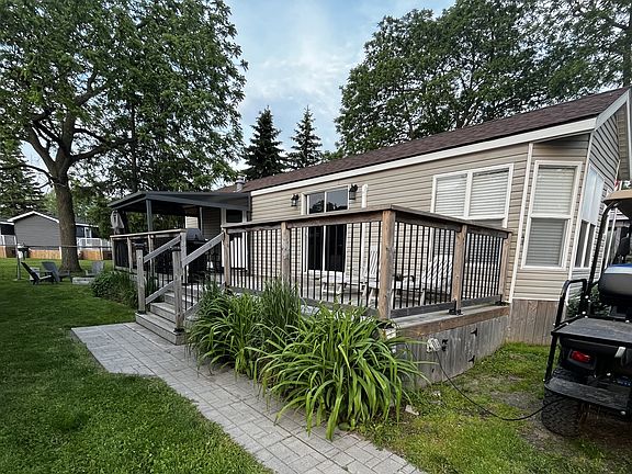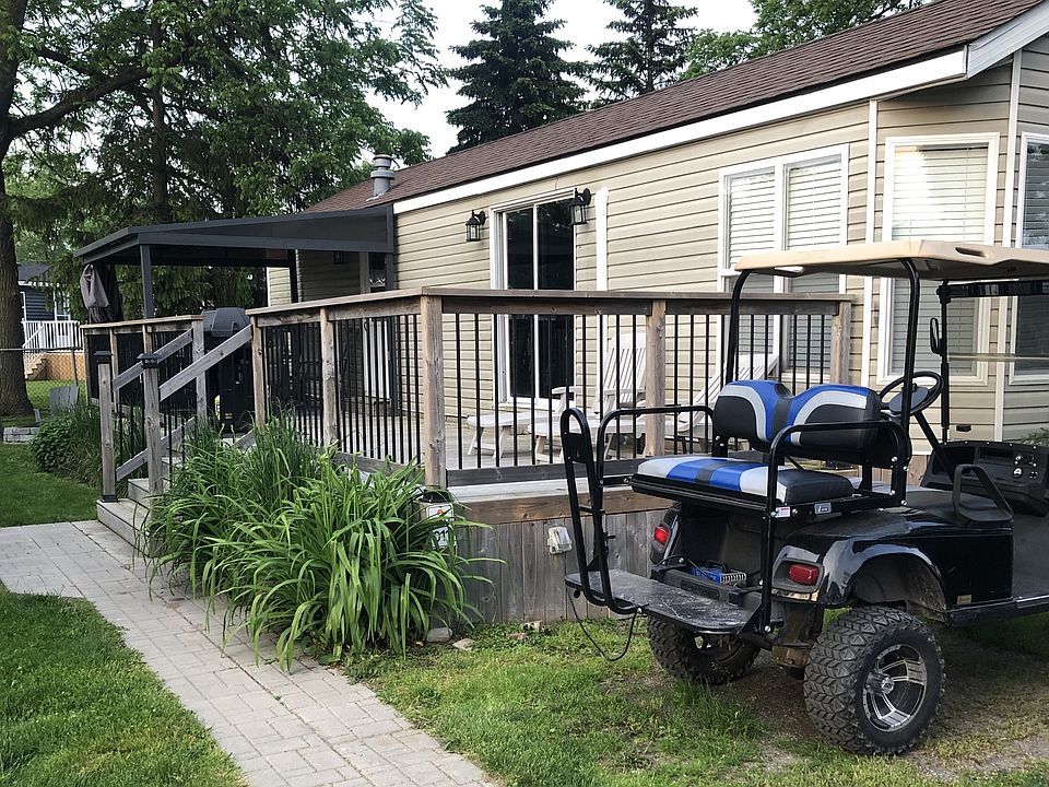 Welcome to Evergreen Village #11, a beautifully updated 2-bedroom cottage located in the north end of Sherkston Shores, just a short golf cart ride to the beaches and steps from the Family Funplex and water park. Inside, the cottage has a fresh modern feel with updated paint, a bright kitchen and dining area, and a cozy living space designed for comfort and style. The recently renovated bathroom features sleek tile work and a modern shower with upgraded fixtures, giving it a spa-like touch. Outdoors, enjoy a large deck with modern railings (2022), a gazebo (2023), and a private patio with firepit, perfect for relaxing or entertaining. A brand-new minisplit heating and cooling system (2024) keeps the space comfortable year-round, and the new shed (2024) adds extra storage. With its prime location, updated interior, and inviting outdoor living spaces, Evergreen Village #11 is move-in ready and waiting for you to enjoy. Start your Sherkston Shores adventure here!