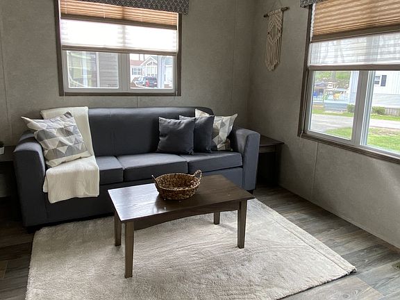 This Like New, 2018 General Coach Florence is located fairly centrally within the Resort. A short drive from the main complex and both Lake Erie Beaches, this 3 bedroom 14 wide Vacation Cottage is ready to move in and enjoy! At approx. 504 sqft you can sleep 6 VERY comfortably and can push that with the sleeper sofa in the livingroom for extra guests or family members. The unit comes with a Nest thermostat and reverse osmosis filtration system. The partially covered deck offers shade as a great spot to enjoy family dinners around the dining set for 6. While the rest of huge deck offers sun/shade for relaxing on a full conversation set and bbq ing on the Broil King BBQ included in the purchase! Contact the Sales Centre to set up a viewing today!