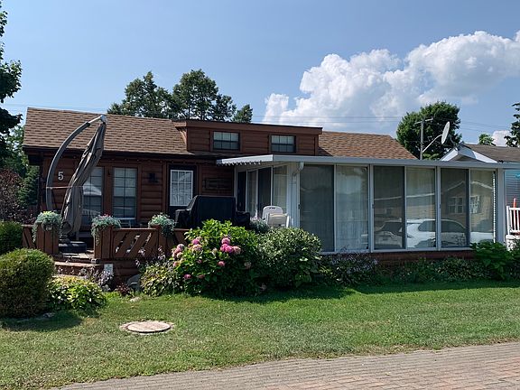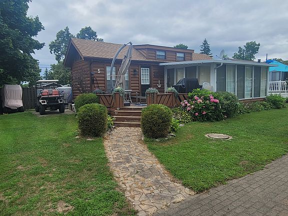 Welcome to Quarry View Village #5, where the name says it all - views of the Quarry from your front deck! This 2+ bedroom cottage is unique and has a layout unlike any other for sale! Updated kitchen is open to the add a room, which has a spacious living and dining areas. Second bedroom has unique loft space with extra sleeping quarters. Bathroom has been beautifully updated with enclosed shower, vanity, and storage cabinet. Other recent updates include On-Demand hot water tank, new roof, vinyl flooring, and stainless steel appliances. With it's "log-cabin" like exterior, street facing frontage and no rear neighbours, this must see cottage is not to be missed! Includes TWO golf carts! Contact the Sherkston sales team to book your appointment today!