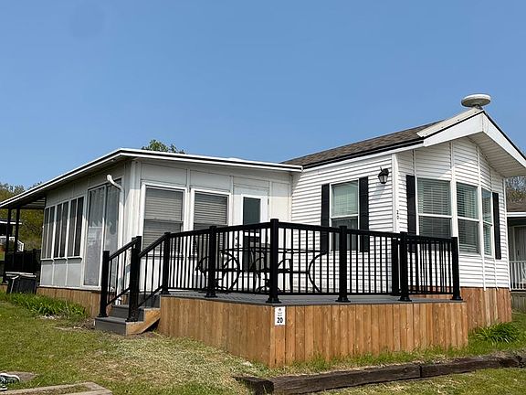 Welcome to Sunset #20! Sit on the front deck and enjoy the lake views all day and evening! This 2 bedroom, 1 bathroom vacation has been updated to have an open kitchen and living room that opens up to the add-a-room. The bathroom has been updated as well. Decorated in neutral colours, this beach house is waiting for you to make it your summer home! Lots of space in the rear yard around the fire pit, storage shed, and ample private parking. Recently updated front deck with new black railing, and extended deck in the rear yard to extend your outdoor living space. Contact the Sherkston sales team today to book your appointment to view this home!