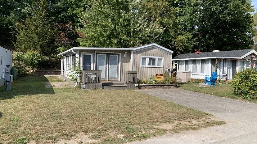 Nestled toward the end of the quiet street of Trillium Lane, Trillium 27 is just a short trip to the beautiful sands of Elco Beach on Lake Erie. This cute cottage that has all the important upgrades and is waiting for you to move in. Featuring a large kitchen area with dining space, amazing custom cabinets for storage, open concept living area with pine wood giving this cottage a vacation cabin feel. Recently upgraded floors, hot water on demand, furnace and bathroom to name a few things. This cottage is waiting for the right couple to make it their summer home.