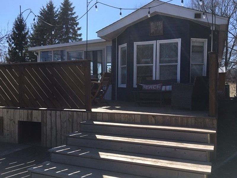 This is Trillium #30! Located close to Elco Beach - Just a quick Golf Cart ride away and yes, the Cart IS INCLUDED in the purchase price! Nestled in a tree setting this lovely 2 bedroom, 1.5 bathroom vacation home has been updated, including a built-in stereo system with speakers throughout the kitchen and bedrooms. Inviting deck in the front and a fantastic, large interlock patio with stone firepit at the rear. New patio furniture and fire table. It has plenty of yard space and a great Amish shed. Great package. Contact the Sherkston sales team to book a viewing today!