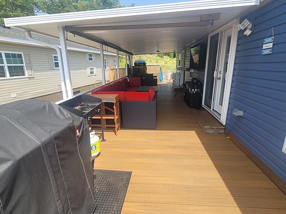 This is cottage living, upgraded. Site #WBC157 offers an open-concept 3-bedroom, 1-bath layout that blends comfort with clean, modern finishes. The upgraded aluminum and glass railing adds sleek style and uninterrupted views from the oversized deck topped with a hardtop cover so you can enjoy it in any weather.Take in water views from the front, then retreat to your private backyard for quiet evenings or weekend entertaining. There s plenty of space for everyone, with multi-car parking and a move-in ready interior that needs nothing.Whether you're looking for a peaceful escape or a social hub by the water, Site #WBC157 is the total package.