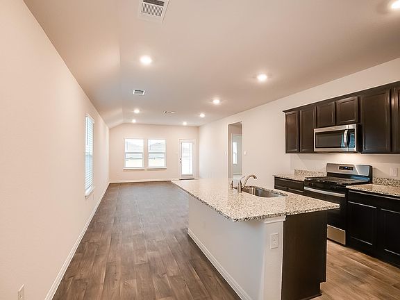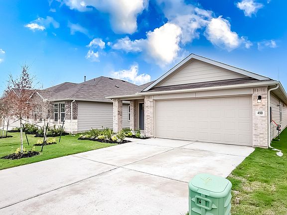 Introducing a pristine, newly constructed residence located at 490 Evergreen Sumac Loop, Kyle, Texas 78640. This remarkable property offers 1,489 sq. ft. of beautifully designed living space, featuring three bedrooms and two bathrooms, all conveniently situated on a single level. Step inside to discover an elegant, open-concept layout where an expansive kitchen seamlessly flows into the dining area and family room. The kitchen is impressively appointed with granite countertops, a stylish tile backsplash, stainless steel appliances, recessed lighting, and a functional kitchen island. As an added bonus, a refrigerator will be provided for your convenience. This home also offers close proximity to the highly regarded Ralph Pfluger Elementary School, ensuring easy access to excellent educational opportunities for your children. Refrigerator will be provided.