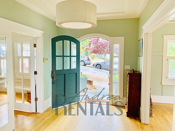 :: Given the current state of our county and world, AndreaRentals will offer virtual tours of empty properties by request. We are happy to chat by phone and answer questions, collect and approve applications and hold them as pending, and anything else we can do to keep things moving via technology. Our goal is to do right by our clients and by the public at large. Stay safe out there. :: Graceful 3br/3ba Traditional, never before rented, with beautiful upgrades and terraced outdoor living, available November 1. This 1914 home sits on a gentle slope with a bird's eye view of the surrounding neighborhood. It has 3 bedrooms, 3 full upgraded baths, a bonus media/entertainment room, and over 2,000 s/f of living space across an open floor plan and 2 levels. AVAILABLE NOVEMBER 1ST The attention to detail and quality throughout the home make it a stand out! Lovingly renovated by its owners, it still contains the original hardwood floors and handcrafted built-ins from the Craftsman era, but is fully updated to match 21st-century sensibilities. There are coffered ceilings A stone path leads through the terraced front yard to the front porch and main front door. You step into an open foyer with the living room on your right, the dining room on your left, plus a full downstairs bathroom and central staircase to the second level. The living room is the entire length of the house, with windows overlooking the front yard on one side and french doors to a rear deck on the opposite side. A large stone fireplace anchors the room in the center, along with period bookshelves built-in on either side of the rear french doors. On the left side of the foyer is the sunny formal dining room, with two original built-ins on either side of decorative french doors, plus large windows overlooking the front yard. It connects the gourmet kitchen, artfully renovated with Heath tile backsplash, extra-wide farmhouse sink, BlueStar professional gas range, butcher block countertops, stainless steel fridge, and plenty of cabinetry and storage. It's the perfect kitchen for cooking up whatever you find on your walk to the nearby Saturday morning Farmer's Market! At the rear of the kitchen is a large den/entertainment room or office, bathed in sunlight, which also opens out to the rear deck. The upper rear deck is wide and sunny, with room for outdoor dining for 6 plus a grill with built in propane valve. There is a full bathroom with shower on this level, as well as access to the basement utility room with washer and dryer. From the foyer staircase, you head up to the 3 bedrooms and 2 full baths on the 2nd story. The hall bath is spa-like, with an enclosed sunken jacuzzi bathtub plus shower and a big skylight. The master bedroom is at the top of the stairs, with large windows overlooking the street, 2 separate closets with built-in organizers, and a 3rd full bathroom. The en suite master bath is newly renovated with a large walk-in shower with rainfall showerhead and modern fixtures. The other two bedrooms on this floor are spacious and bright, with ample closets and hardwood floors, and custom window shutters - perfect for offices, kids rooms, or as this owner has decided ...yoga studio! The backyard is simply awesome, with three terraced decks leading down from the main living room and den areas to a quiet japanese garden. There is a long driveway along the side of the house with parking for one car. At the end of the driveway is a large shed for storing bikes, camping gear, or anything else you need to tuck away. Fantastic central Oakland location, right on the Piedmont/Grand Lake border. You're just a few blocks from the bustling Grand Lake Saturday Farmer's Market, all the shops and restaurants on Grand and Lakeshore Avenues, and the historic Grand Lake Theater. Close to public transit, including the awesome Bay Area casual carpool. The best of urban living in a suburban setting! Owner pays for garbage and monthly gardening 1 pet considered with extra deposit Available November 1st. Showing by appointment only - take a Virtual Tour Now! Available now. Showing by appointment only. Please call or email to set up a time and give us some information about you! Servane Valentin BRE#01999256 BRE #02003472 A Rental Concierge for Bay Area Owners and Renters owner pays for trash and gardener once a month. Tenants responsible for Water/PGE and Internet
