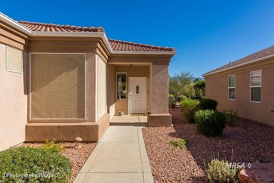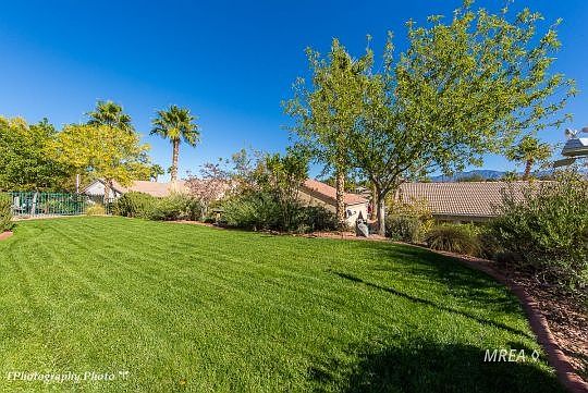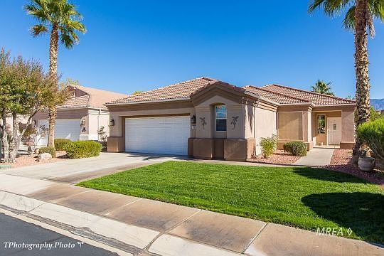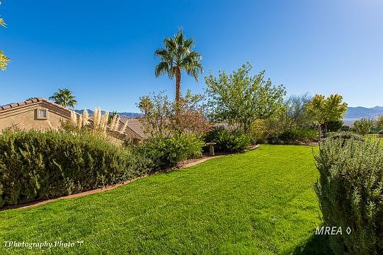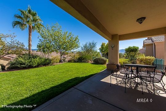 This FURNISHED home is located in a gated, golf course community north of I-15. Highland Fairways is an Active Adult Community offering maintenance free living, convenience and a desirable location. From the cascading entry waterfall to the lush landscaping throughout this well manicured community, you will not be disappointed. This TURN KEY home is situated on an elevated home site offering beautiful mountain views and privacy. The eastern orientation is desirable for year round use of the spacious covered patio. The yard is fully fenced and the landscaping is mature offering an array of color from every window. The floor plan is open and the ceilings are vaulted. Windows line the home providing natural light and views. The kitchen is spacious and the center island allows additional room for food preparation. The master suite is roomy and has a sliding glass door out to the patio. The laundry room is awesome with ample cabinets, washer, dryer, sink and a work station wired for computers. The extended two car garage allows ample room for storage and toys. The custom cabinets are a bonus. The HOA fees are minimal and include free access to the Mesquite Vistas Recreational Facility.