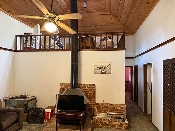 Very unique octagon shaped fixer upper with 3 bedrooms, 1 1/2 bath. Walk outside main bedroom to your deck for morning coffee. large living room with vaulted ceiling with tongue and grove boards. Living room also has a wood burning stove and you can see up to the loft which isn't figured into the square footage of home. There is built in shelves and even a built in gun cabinet. Lots of storage under the home. For this price come do some work and have the coolest house in the neighborhood.