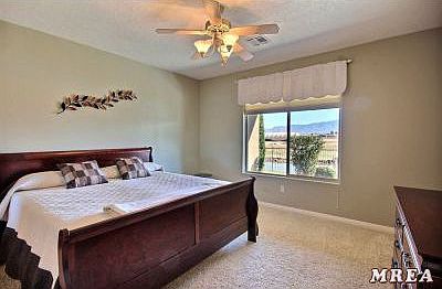 This town home was one of the original models with many upgrades and it has a very welcoming feel. Orientated with a east facing backyard you can enjoy the Virgin Mountain views, the golf course and the wildlife sharing the lake between the property and the golf course. The home has a beautiful front courtyard to catch awesome sunsets and as you enter you first notice the custom tile treatment. The first bedroom is on your right with a large full bathroom shared with the second bedroom. This bathroom has a custom walk-in tiled shower with decorative glass blocks a nice look. Across the home sits the Master Bedroom suite. Comfortable in size with a large window facing to the east, The Master Bathroom have his and her sinks and a roomy walk-in closet. With the vaulted ceilings the great room floor plan allows for everyone to be involved. Kitchen has Corian counter tops and plenty of cabinets. The garage is was used as the model office and still has carpet and numerous outlets.