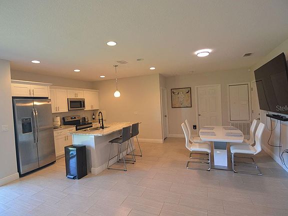 The combination of location and view on this house is unbeatable. 3 minutes to I-4, 1 minute to Publix, and directly on the lake front. House boasts high ceilings, matching high end granite, stainless steal appliances, brand new dishwasher, everything is neat and tidy. Super convenient with fantastic calming water view, very quiet. Water softener and both 85 televisions are included. Other furniture is available if desired and can be negotiated.