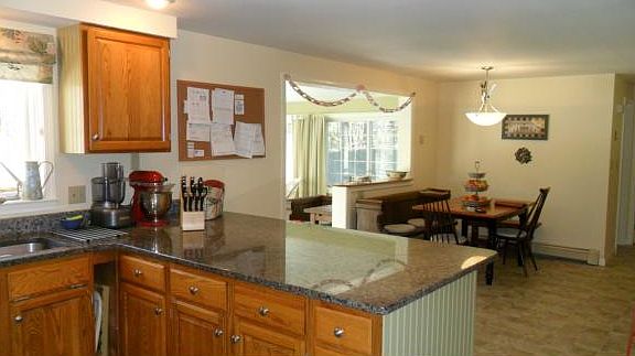 Four bedroom Colonial home in a lovely location! Open kitchen with breakfast bar, granite counters, pantry & dining area. Sunny Sunroom with views of the back yard, flowers and the IG pool. Large front to back living room with hardwood floors & wood stove with brick hearth. The first floor also includes a formal dining room that is currently used as an office and would be perfect for a library or family room. Master bedroom with en-suite. The baths are updated, laundry room, two finished rooms in the lower level and an unfinished area that is perfect for storage or a hobby room. The yard setting is classic New Hampshire landscape with mature trees, garden area and loads of flowers including Hostas, Aquilegia, Lilies, Honeysuckle, Gladiola, pansies and more. Fenced back yard area, shed, stone patio leading to the pool, large deck. Rare find in this beautiful location!