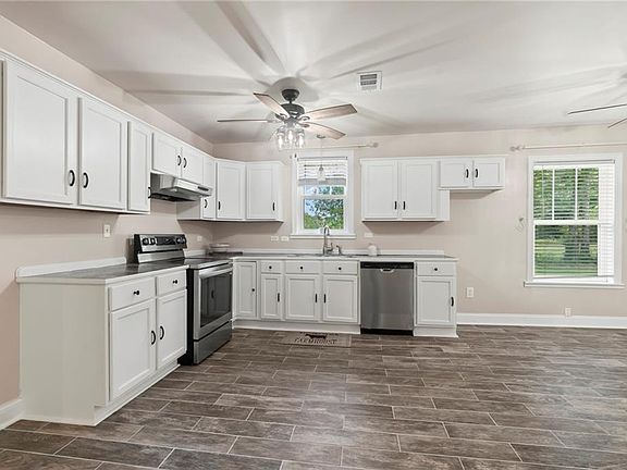 You will fall in love with this beautifully renovated 3-bedroom, 2-bath cottage surrounded by impressive oak trees on 3.5 acres in the Mount Pleasant community. This home features gorgeous new hardwood flooring and open concept layout. All new paint, fully renovated bathrooms, new HVAC system, new windows, spacious laundry room, primary bedroom with attached bath, faux fireplace with mantle in the spacious living area, & stainless steel appliances in the kitchen. Large foyer could be an office! Sit on the front porch and listen to nature as you enjoy your coffee! The beautiful tree-lined property includes a chain-link fenced area, a greenhouse, a chicken coop, and a workshop area with shed. Very private at the end of a dead-end street with no through-traffic.