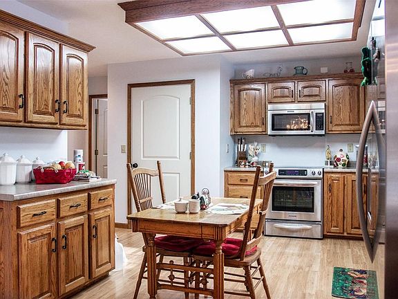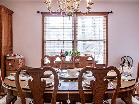 GORGEOUS home located on the end of a dead end street gives you privacy and seclusion in town. This 4 bed, 2 bath home offers a split bedroom plan, a large eat-in kitchen, snack bar, and dining area. In the winter, you'll be able to stay nice and cozy with the gas fireplace. This home has so many beautiful details with the recessed ceilings, large stamped concrete patio, and brick and vinyl exterior. The home has a .32 acre lot that is beautifully landscaped and includes an oversized garage.