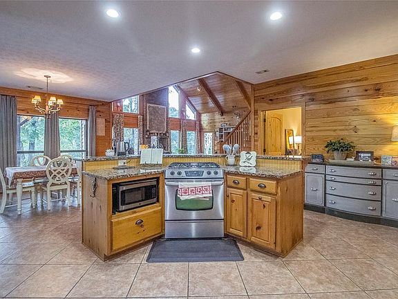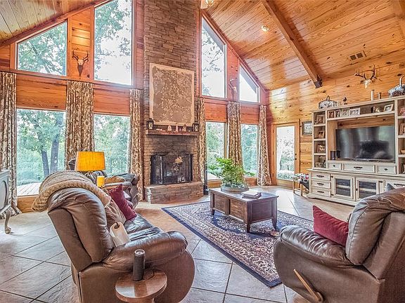 This could be your DREAM home. If you are looking for a wilderness retreat right here at home, I found it. Follow the long, winding concrete and asphalt driveway across the property, pass the 2.4 acre stream fed, stocked POND, up the hill to the 3100 square foot, 5 bedroom, 2 bath home. You will be amazed by the views from the living room. Vaulted ceilings. Exposed beams. Stand at the walls of windows or by the wood burning, stone fireplace and watch the wildlife. The deer come right up to the house. The kitchen and dining are open to the living. Gas stove. Granite counter tops. Tons of cabinets. Huge bar. Stainless appliances. Pantry. Pull out drawers and trash can spaces. Tile floors. 2 bedrooms off the kitchen share a hall bath with washer/dryer hook ups in the closet. The MASTER bedroom is off the living room with a fabulous view that you can see from your king sized room. Luxurious master bath with garden tub, separate shower with 2 shower heads and a bench, recessed lighting, nice walk in closet, and laundry room. As you walk up the wooden staircase, notice the view of the property from the loft area. Two more bedrooms flank the loft. Outside, we have a beautiful salt water POOL with waterfall and extended concrete space for entertaining and the nicest man cave I have ever seen:over 1000 sq. ft., recessed lighting, speckled concrete floor, built in desk, and additional interior workshop space. Off to the left make sure you see the quarter acre, fenced chicken coop, dog pen with power and water, 5 acre fenced area that could be used for livestock, archery range with 8 targets off the trails, green fields, atv trails, and so much more. HIGH SPEED INTERNET. 2 new 16 SEER heat pumps 2019, new roof 2018, 400 gallon propane tank buried, tons of storage, irrigation. Owners have 4 gate openers. Pistol and rifle sighting areas. Nature trail around the pond. This is the PERFECT property for hunters or wildlife enthusiasts.