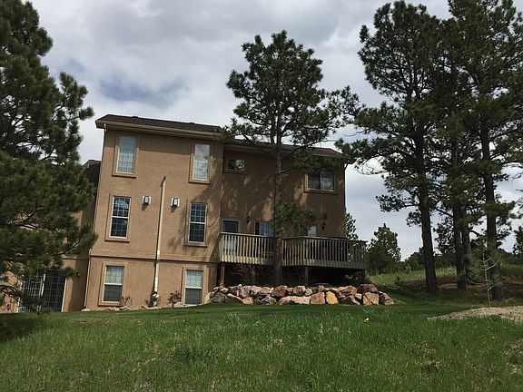 YOU WILL NOT FIND A BETTER VIEW OR MORE YARD AT THIS PRICE IN MONUMENT! This home is AMAZING! Open floor plan, main level master and newly remodeled! Like new! Enter into the welcoming and spacious herringbone tile flooring. The dining room and great room have new engineered hardwood with two story stone fireplace with view of the front range. Family room opens to newly remodeled kitchen with wall of cabinets, walk in pantry, herringbone tile floor and stainless steel appliances! Kitchen also has granite counter tops and island, plus gorgeous views. Walk out to private deck w/ built in table. Corner lot is fully fenced with separated dog run and gates on either side of house. Laundry room is located right off garage entry. Updated main level half bath. Private main level master with your own deck and yet another view. Five piece bath has been recently remodeled with new paint, new mirrors, new lighting and chandelier. Feels like a spa. Upstairs you will enjoy three very large bedrooms, one with a view and another with 2 closets. Hall bath has double sinks and separate tub/toilet area. The walkout basement has one more bedroom (currently used as an office), for a total of 5 bedrooms, two sitting areas, your own workout area and a separate movie theater! Leather recliners and movie equipment included!