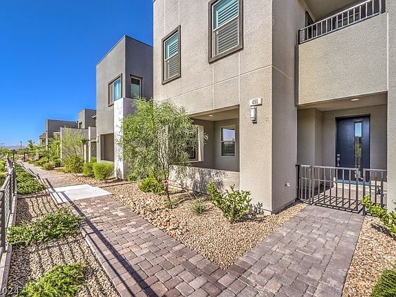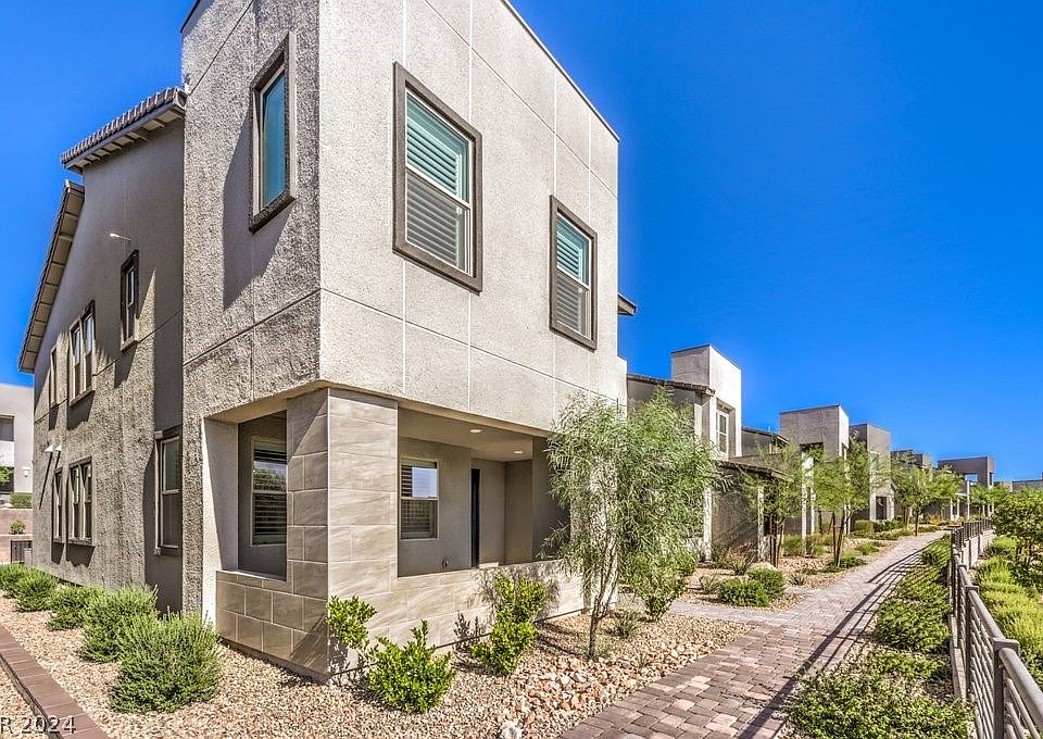 Gorgeous,1860 Sq ft.- end unit townhome offers 3 beds, 2.5 baths & 2-car attached garage in Summerlin West at Redpoint. Enjoy impressive Las Vegas Strip views from this exceptional property. Step inside to find beautiful porcelain tile flooring throughout the entire 1st floor. The kitchen boasts 42" cabinets, calcutta waterfall quartz island & stainless steel appliances. Plantation shutters throughout! Owner's suite features a large walk-in closet & a private balcony with strip views. Owner's bath features a large , luxurious shower. Additionally, there is a large covered and gated entrance patio for outdoor dining or relaxation. Epoxy flooring in garage & electric car charger. Tankless water heater and soft water system! Excellent schools! 5 minutes away from Downtown Summerlin with its dining, entertainment, & shopping options. Red Rock Casino, Trader Joe's & Costco are nearby, along with biking & hiking trails & several large parks with community pools. Live the Summerlin lifestyle!