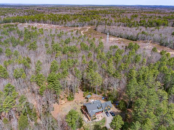 Adirondack style home on 93± private acres with its own pond complete with timber frame camp with wood stove. This quintessential Maine timber-style home tastefully combines hard and softwood, and stone with plenty of windows to bring the outdoors in. Enter through the two-car garage or off the farmer's porch and be transported to a time and place you could only previously dream about. Entertain guests with this efficient open concept kitchen, dining, and living area. Relax in front of this one-of-a-kind granite stone hearth that features propane wood-stove. Enjoy a good book or conversation in the south-facing sunroom or sunset in the west-facing four season porch complete with hot tub. One bedroom and full bathroom on the main level. Upstairs includes a mezzanine loft area, primary bedroom, full bath and unfinished bonus area with plenty of room for storage or potential for additional finished space. Walkout basement provides ample storage or workshop area. Enjoy the sunset and watch the thriving wildlife from the west-facing deck. In the back yard you'll find plenty of shed space for wood and tool storage, raised garden beds, and a fire pit waiting for an evening campfire. Nearly 100 acres to enjoy the outdoors as you see fit, hunting, fishing, or hiking. Maine, the way life should be.