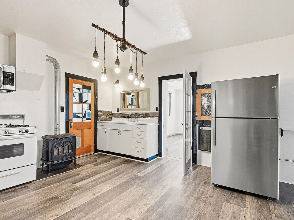 Step into this charming single-level home with three cozy bedrooms and a single bathroom. This 1,176 sq ft house features a root cellar for extra storage and a beautiful kitchen with custom white pine cabinets and lovely stained-glass accents. The property includes an adjoining lot at 335 E 500 N, parcel #03-0011-0043, together offering .46 acres, a workshop and storage shed. Located just 18 miles from Eagle Point Ski Resort, it's ideal for an Airbnb or a family home, with a school and ball fields nearby.