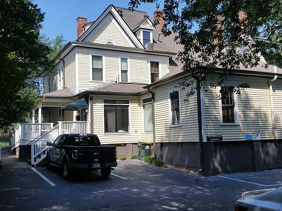 This is a historic office building with a small office upstairs that includes basic utilities like heat and A/C, restroom down the hall, parking behind the building, and a conference room that is shared by all the tenants in the building. One year lease, $700/month.
