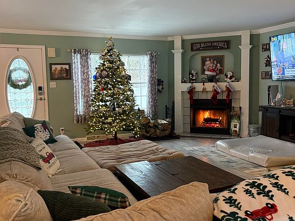 Meticulously maintained ranch home located on the outskirts of town, offering the perfect blend of comfort, space, and outdoor enjoyment. This inviting home features 1,900 square feet of living space with mostly all new flooring throughout. The large kitchen is well-appointed with an island and all appliances included, opening to a formal dining room ideal for gatherings. The spacious living room showcases crown moldings, new flooring and a wood-burning fireplace, perfect for relaxing evenings. The home offers three bedrooms and two full bathrooms, including a generous primary suite with a completely remodeled bathroom that conveniently houses the laundry area. Step outside to enjoy both front and back decks, overlooking a huge backyard designed for entertaining. Outdoor amenities include three fire pits, an above-ground pool, two horseshoe pits, and a gazebo equipped with power and WiFi. Additional features include a storage shed and an impressive 28x40 garage complete with a wood stove, bar area, and attic storage. With two separate driveways, there is ample parking and storage for vehicles, recreational toys, or guests. Recent improvements include a new propane furnace with central air, new water softener system, updated flooring, and much more. This exceptional property offers space, functionality, and a lifestyle you’ll love. Do not miss out, call for your appointment today!