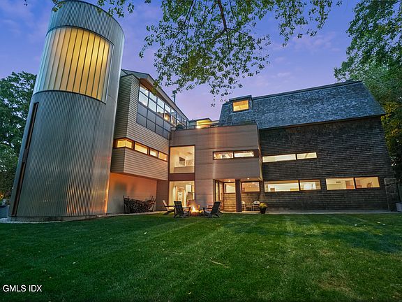 This is more than a home—it's a living work of art. Come and see the recent updates, including fresh new painting throughout, as well as enhanced landscaping and outdoor lighting. The extraordinary residence functions beautifully for family living but originally it was a 200-year-old barn transformed in 1973 by acclaimed architect Charles Gwathmey, blending rustic heritage with bold modernist design. The home showcases Gwathmey's signature sculptural details, including glass block walls and an interior silo encircling a dramatic spiral staircase. The centerpiece is a breathtaking 30' x 35' great room with soaring beamed ceilings, a massive fireplace, and natural light pouring through expansive windows. The property has since been thoughtfully expanded by its current owners and was featured in Architectural Digest in 2005. Set on a secluded mid-country acre, the home offers five bedrooms and a seamless indoor-outdoor flow that invites year around entertaining. Designed with both style and practicality in mind, the layout offers generous gathering spaces, private retreats, and a backyard oasis with mature specimen plantings, pool, spa, firepit, grill, bar and covered lounge area. Every detail, from the architectural pedigree to the lifestyle amenities, reflects a rare fusion of history, innovation, and artistry.