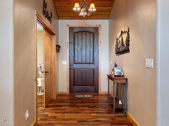 Incredible home with 4 bedrooms and 3 baths in desirable Woodland Hills at the end of cul de sac. High end craftsmanship throughout, you are going to fall in love as soon as you enter the home and see the tongue and groove Vaulted Ceilings, Hardwood floors, Granite Counters, wood stained Cabinets in kitchen, baths and laundry, stacked stone fireplace and APARTMENT above the 3 CAR garage. Enter through the home upstairs to a studio apt that is currently used with bed set, kitchenette, eating area, full bathroom & space for office. 3 additional bedrooms and an office with split floor plan. Downstairs master bedroom has access to a covered patio, dual sinks with extra storage, separate tub and shower, and walk in closet... Plenty of room to entertain inside or out. Outside features an oversized deck w/ tongue and groove overhead, lighting, firepit, horse shoe and water feature. There is a built-in storage shed too for all of your outdoor tools and toys! Come enjoy all Pinetop has to offer and stay live near Woodland Lake Park, movie theater, best restaurants in the area and only a short drive to skiing, golfing and hiking!