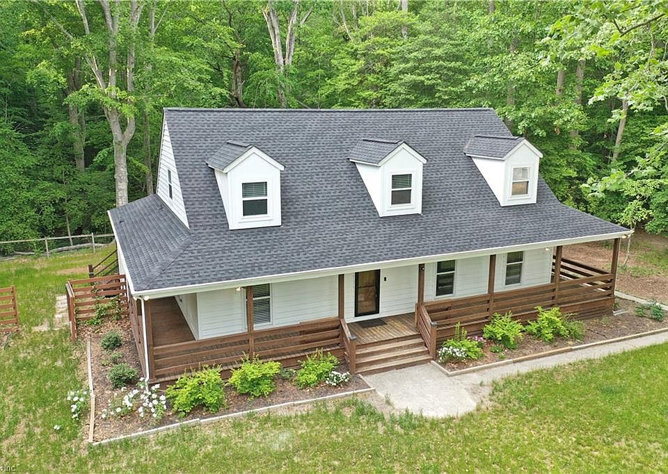 A rare find with private James River Beach Access! This 3.41 Acre property tucked in a quite water front community offers fiber internet, wooded views, and peaceful country living. The 2500 sqft main home features vaulted ceilings, a bright open layout and a wrap around porch perfect for enjoying the scenery. A separate 1000 sqft private guest house with full kitchen and bath sits above a detached 2-car garage, ideal for guests, rental income, or multi generational living. Recent updates include NEW tile flooring, roofs, ac units, and decks. A large open field is great for gardening, horses, or home steading. Relax at the private community beach and enjoy kayaking, fishing, or try your hand at shark tooth hunting! Minutes from Grays Creek Marina, bring your boat! Hop on the James Town Scotland Ferry to reach Williamsburg with ease. Water access, acreage, high speed internet, and country living, this one has it all! Opportunities like this are hard to find, Don't miss it!