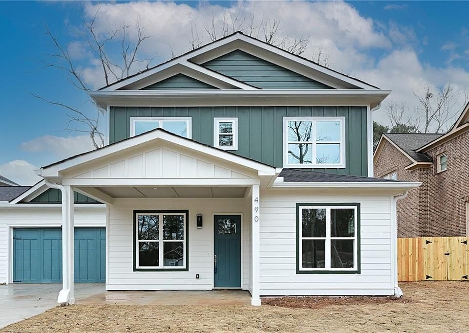 NEW Construction in the heart of East Lake Community. This is your opportunity to be steps away from the Famous East Lake Golf Course & Zoned for Drew Charter School! This is unlike other new construction properties in the area- the look and feel of a traditional single-family home feel with high-end finishes. Arrive to a warm. inviting exterior with a 2- car garage featuring ELECTRIC CAR CHARGER. Garage Wall is the only shared wall between Unit A and Unit B. Ample driveway parking. This beautiful two-story unit has a main floor bedroom, full bathroom, and open living floor plan. The GORGEOUS Kitchen has CUSTOM cabinetry, MARBLE BACKSPLASH, HIGH-END HARDWARE, CUSTOM LIGHTING, and so much more. The Kitchen opens to a light-filled living room with a MARBLE TILE FIREPLACE and glass sliders that lead to your OUTDOOR OASIs- fully fenced, privacy and flat yard. Large Owner's Suite Upstairs with marble floors, dual vanity, soaking tub, & glass shower with gorgeous tile work. Upstairs also features: Laundry Room with Storage, 2 secondary bedrooms and additional full bath up. This custom-built property features high-design features including Cove Crown Molding, Wainscoting, 2-panel interior doors, Custom Cabinets, Marble Tiled Backsplash, & Designer Light Fixtures. Close proximity to I-20, Emory, vibrant Downtown Decatur, East Lake Community, Agnes Scott College, Drew Charter School, and more!