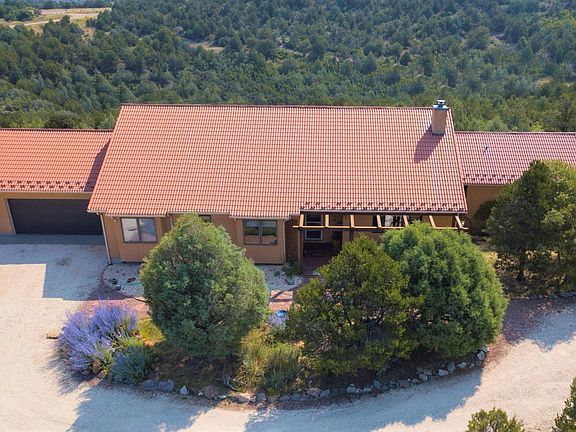 At the end of Rainbow Ridge rests this custom built home lovingly designed by the owners. You don't have to guess why the road is called Rainbow Ridge - and over that ridge lie the most stunning and picturesque views of the Sangre de Cristo Mountains. The front courtyard has beautiful landscaping and the back of the home a large deck for relaxing and entertaining. This one-level home boasts an open concept living, formal and informal dining, kitchen and sunroom combination that allows for sightlines in all directions. The living room is kept extra cozy with a wood burning fireplace, and that heat is also felt in the formal dining room/kitchen. You'll find artistic touches in every room, from window seats to curved arches, colorful tilework in the kitchen and large sunroom windows. The master bedroom boasts an ensuite bathroom with separate jetted tub, walk-in closet and doors to the freshly stained deck. An attached two-car garage makes access a breeze, and the additional one-car, freshly painted detached garage makes for a wonderful workshop. Just through the front door is the study, currently used as a sewing room. Adjoins 2,320 acres of BLM in Fremont County. Close to HWY 50.
