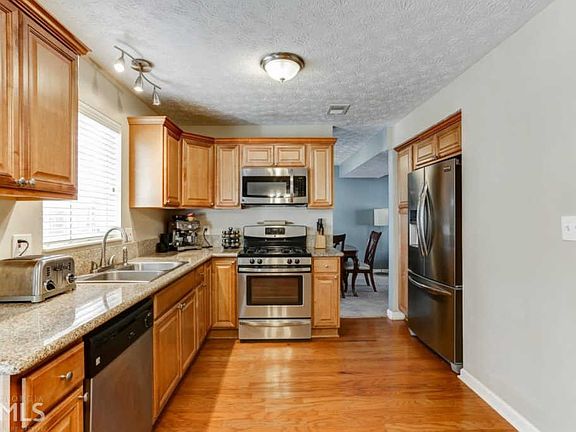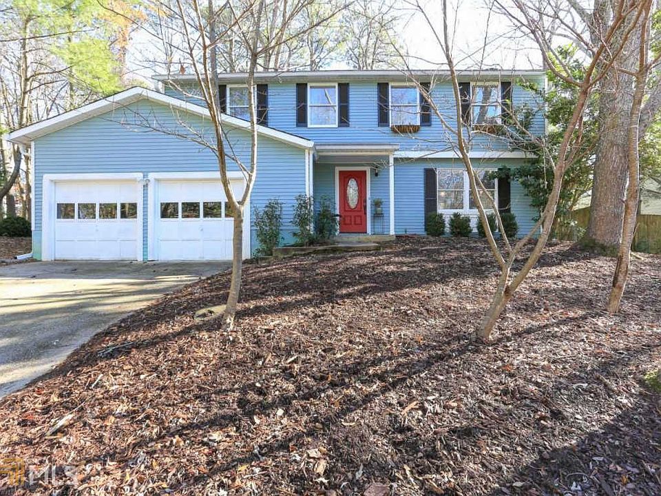 Bright, Blue, and Waiting For You! This lovingly maintained Two-Story Traditional offers Form and Function with a Private Backyard Retreat! An inviting Entry Foyer opens to a Formal Living Room and adjoining Dining Room. Hardwood Floors lead into a Heart-of-Home Kitchen with Granite Countertops, Stainless Steel Appliances, and Breakfast Area. Entertain and unwind in the Fireside Family Room. Upstairs, an Oversized Landing makes for the perfect Flex Space. A Spacious Master Bedroom delivers Custom Walk-In Closet and Private Ensuite. Ample Storage with Dual Closets in Secondary Bedroom! Outside, a Large Patio overlooks a Fenced Backyard with Firepit, Shed, and a Private Stone Path that serves as a Shortcut to Downtown Roswell! Steps to Gate City Brewing, Old Mill Park, and Fantastic Shops and Restaurants along Canton Street like Salt Factory Pub and Rock 'N Taco.