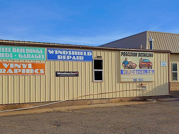 Commercial/Business property near the popular Sonic, Arby's, and new Popeye's Chicken locations as well as all new car dealerships. This listing includes the real estate, business equipment, and assets - but not the existing business name, records, signs, training, computer, or other relative assets, unless negotiated separately. The business assets may be sold separately from the real estate for $95K for those who have their own business venture, and may also include an extended lease agreement for the real estate. The real estate may not be sold separately from the business assets. The property features one large shop area with three work bays, 3 overhead roll-up doors on the east and one on the west (for drive-through), plus an attached carport bay outside; all four of these bays has a drainage/mud pit. There is shelving and cabinet space for tools, supplies and equipment. Two furnaces are located within this section that heat these bays along with the rest of the building. Also, a clothes washer and dryer are included. Another separate shop area has a single bay with an overhead roll-up door on the north side and includes all of the equipment and inventory/supplies for window tinting. This bay has also been used for checking interlock systems, windshield replacement and repairs. It contains storage of supplies, a refrigerator/employee break room, shelving, cabinets, and solid concrete floor. The main area includes the office and customer counter / waiting space, storage and water heater closet, utility sink and coffee machine/microwave, plus all existing furniture and equipment. It offers entry from both shop areas, in addition to ingress and egress from the north parking lot and south main entrance on 5th Street. The 1/2 bathroom and mechanical room are accessed from the exterior, south side. This corner location provides front and rear parking for customer and employee vehicles as well as easy access on to 5th Street and Broadway. The roof was repaired and coated during 2021, along with the required installation of a backflow prevention device. A Navien tankless water heater was installed 2022 and all sewer lines have been recently cleaned and inspected. The Seller is related to the listing agent. EXCLUDED from any transfer is the metal storage container, which belongs to another individual and will be removed.
