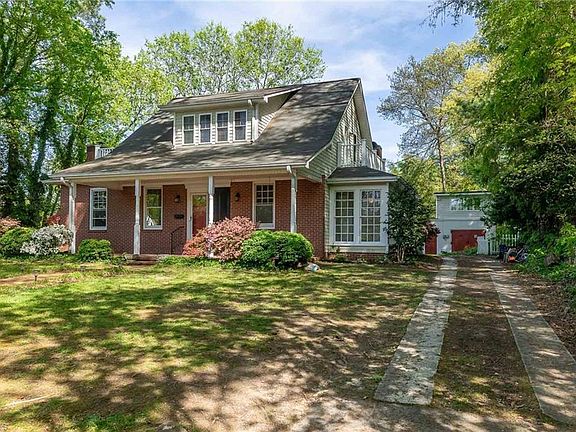 Historic Samuel M. Call Craftsman Bungalow with wide front porch and huge acre plus lot in the heart of the Salisbury Street Historic District. Uniquely tucked in and accessed by long driveway for added privacy! Updated kitchen with granite countertops, generous pantry, recent appliances, and and new flooring. Bathrooms are updated and spacious keeping with the historic aesthetic. 2023 Roof on screened porch and studio. 2020 2nd floor heat pump. Features include: Generous closets and 2nd floor balconies with new railings, Hardwoods throughout (additional antique heart of pine onsite), Main level ensuite primary with enclosed side porch, Whole house leaf gutter guards, Wood burning fireplace in living room with wall to wall brick seating, and Wood stove in Den. Fantastic studio outbuilding with upstairs loft and running water (not counted in sq. footage). Detached screened porch for outdoor eating. This is a special home that must be seen in person! **See agent only.**