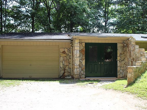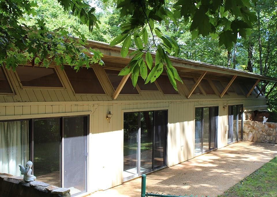 Very unique home located in Baines Mountain outside of Bryson city. Home has 2 bedrooms and 2 bath rooms. Open floor plan living and dining room. A two car garage. Rock work through out. Lost of closet space and custom cabinets. Large fenced back yard. 65 foot Rick patio, sliding glass doors in all rooms to back yard and very private. Full time home or get away. Could be used for an air bnb or yearly rental. Great winter times views . Private well and septic. Lot size is 1.86 Acres.