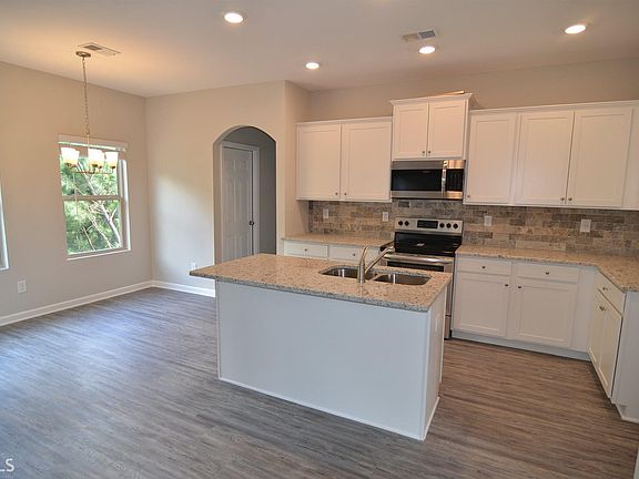 - Kitchen Features: Breakfast Bar, View to Family Room, Stone Counters, Kitchen Island, Breakfast Room, Cabinets White