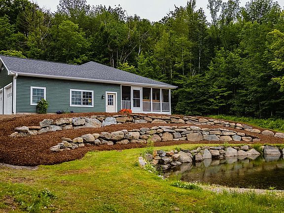 Custom built home by owner-builder! Home features one story living with everything you need on one floor! There's wood flooring in living room, entry, & hallways, oak stairs to basement, gas fireplace, beautiful natural trim, solid wood doors, built-in shelves in living room, & beautiful cherry cabinetry. A big feature is the amazing 16' x 20' screened-in porch to sit out on and enjoy the mountain views & sunsets. The small pond, stone walls, and nice landscaping make this a special setting. Basement is insulated and offers a huge expansion possibility: It has plumbing roughed in for bath and there's stairs up to garage, & outside. There's also a bulkhead entry for easy storage access. Attached 2 car garage is oversized & was plumbed for one time idea to add an in-law apt. (currently not permitted). The septic system is designed for a 4-bedroom home. Another great feature is a detached 30' x 32' garage/workshop which offers lots of storage for large vehicles, boats, etc. (siding on this detached garage to be finished by closing). This home is next to major hiking trails and just minutes to Bolton Valley skiing!