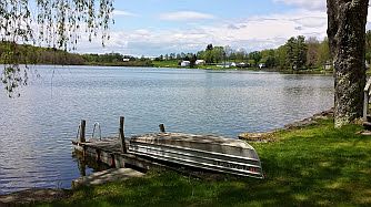 LAKEFRONT! Watch the sunsets or fish from your covered deck. Perfect get away or summer home. Just in time for this years vacations. Popular lake location with long term residents. Motors allowed. HOA fee $10.00 per yr. 1st floor private bedroom plus 2 bed loft. Living room/dining room combo with cozy gas fireplace. Your own boat dock. Under deck storage. Can be used year round
