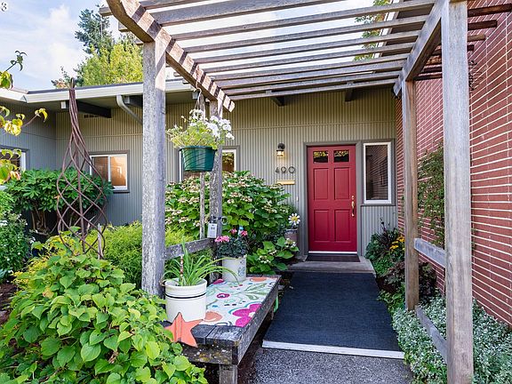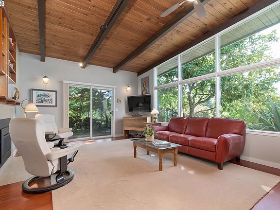 A College Hill Mid Century home - SINGLE LEVEL- 3 bedrooms, 2 full baths, 1893 SF. This home was remodeled to the studs. Multiple skylights, Engineered Cherry floors, Cherry cabinets, SS appliances, induction cooktop. A kitchen island makes entertaining easy with granite counters and an eating bar. There are 2 gas fireplaces- one in the living room and one in the dining/kitchen. Beautiful vaulted wood ceilings and exposed beams throughout. The primary bedroom features natural stone, walk in shower, travertine and granite. There is a huge storage closet in the hallway. Two other bedrooms, a laundry room, and a 2 car attached garage. The roof is newer roof, updated electrical, updated windows, and Rejuvenation Hardware lighting fixtures. A ductless heat pump with 3 heads, provides heating and cooling. Nice views of Spencer Butte, and a lovely landscaped yard, with an arbor to relax in.