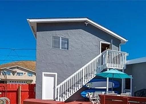Peaceful beach retreat in North Morro Bay! 1 bedroom 1 bath, upper-level home. An abundance of natural light cheerfully illuminates this home. Open wood beam ceilings keep the beach lifestyle easy to maintain. Proximity to the beach allows for surfing, strolls with the dog, and much more. Newly painted inside. Includes one garage parking space with washer/dryer. Perfect for individual or couple. Home is rented unfurnished. Partially shared space with unattached 2/1 home seen in pictures. Private side entrance. Two (2) person maximum. Will consider one (1) small/med sized pet with additional deposit. No smoking or vaping of any substance permitted on the premises. One (1) year lease min. then full month to full month. Owner covers garbage and landscape Requirements: current full credit report, valid driver's license and deposit. Positive rental history a plus. Please utilize the Zillow Application if interested.