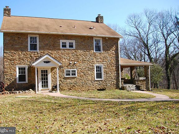 DRASTIC PRICE REDUCTION!!Rare opportunity to live in your own vacation paradise year round or use as a weekend retreat. Secluded and private yet minutes to Rt 1. Nature abounds on this stunning property complete with pond view on bordering property. As you enter the driveway there is a restored stone spring house with cedar shake roof, an abandoned in ground pool behind that (overgrown and needs clearing/cleaning out) Feel the stress of the day disappear as you wind your way up the driveway and reach the gorgeous stone farm house at the top of the hill. There is a detached oversized stone two story 2 car garage which has endless potential as a party room, storage, perhaps additional living space? Huge covered stone porch on front of home with custom woodwork to enjoy your morning coffee on, enter the family room by either set of french doors and enjoy the stone fireplace on chilly evenings, gorgeous formal entry, large dining room and remodeled kitchen complete with granite counters and custom cabinets, laundry room/pantry off of kitchen and powder room complete the first floor. Upstairs are three spacious bedrooms and two full baths. The dry basement is ready to finish with gorgeous stone walls and an outside entrance. This home exudes old world craftsmanship and charm, wood floors throughout (wood floors need some minor refinishing, estimate available), moldings and trim are from a bygone era. This home is sold AS IS with no repairs. Septic type unknown but seller reports no issues/problems. This beautiful home just needs a little bit of polish to bring her back to her original luster.