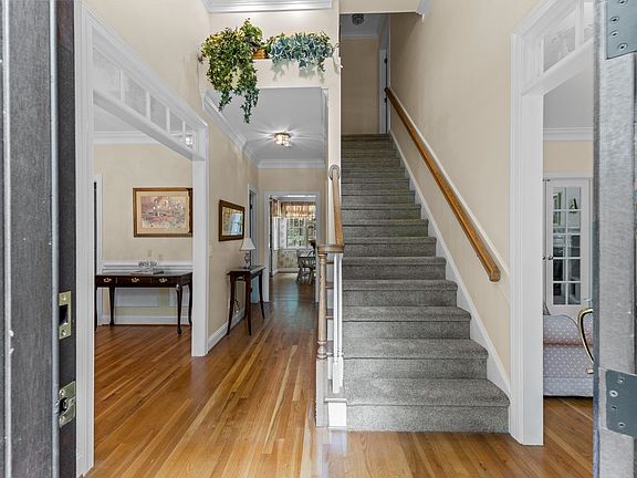 You will enjoy the serene setting of this house. Nicely set back from the street where you can enjoy entertaining on the expansive deck that is abutted to a wooded area. Beautiful beveled glass doors leads you into the soaring entryway where you will find actual hardwood floors. Kitchen offers SS appliances, under cabinet lighting, granite countertops and an expansive walk-in pantry. New carpet in guest bedrooms and hall, new windows upstairs in 2020, HVAC replace in 2021, primary bathroom updated in 2019, and crawl space in basement off of workshop encapsulated in 2023. Refrigerator in kitchen conveys.