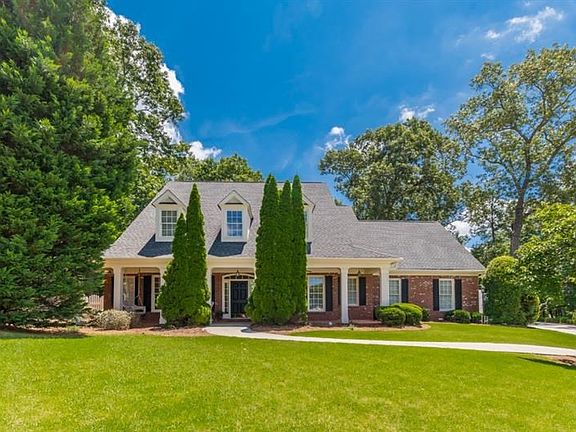 Fabulous 3 side brick home with Rocking chair front porch on almost 1/2 acre level lot with private fenced backyard on cul-de-sac. Hardwood floors and brand new carpet. Lovely kitchen with white cabinets, granite counter tops and a breakfast area overlooking the park-like setting private back yard. 2 story family room, a bonus room and 2nd master on 2nd level. The master on main is lovely with a soaking tub, double vanity, his and hers walk-in closets and a private door leading to back patio. Upper level will find two more bedrooms with a Jack and Jill bath, bonus room and walk-in attic with lots of extra storage! 2021-07-02