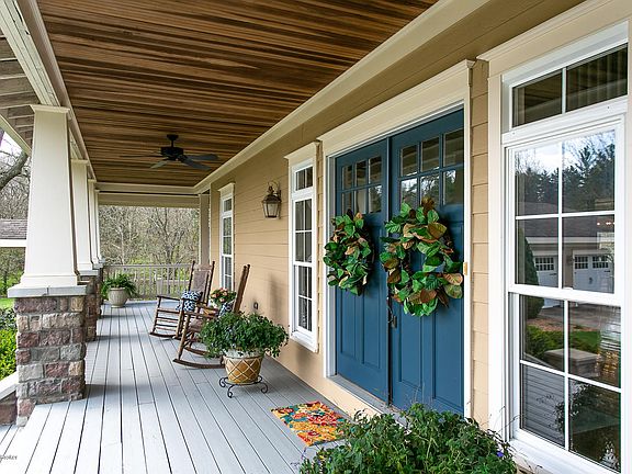 Fantastic Opportunity to own a truly unique, southern craftsman home on 5.21 manicured acres. From the walk up you can see this home is full of detail not found in most builds. With beaded redwood porch ceilings, true 3/4'' hardwood floors throughout, numerous custom built-ins, and ornate moldings abound you will surely be ready to call this home. The home boasts a finished basement with exposed brick and a custom bar that will absolutely wow your guests. The open floor plan is perfect for entertaining and with 2 large porches and a covered deck, you can also enjoy the park like views from anywhere in the house. The chef's kitchen features double ovens and a Wolf range. The home also features geothermal heating, a 3 car garage and a 2000 SF cedar barn with finished interior.