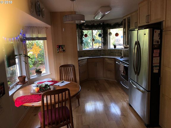 Remodeled. Hickory wood floors throughout, new maple kitchen cabinets with pullouts & soft close, stainless appliances including refrigerator, granite countertops, washer & dryer. French doors out to covered back patio. Water feature in private fenced backyard. Bathrooms have new vanities & comfort height toilets