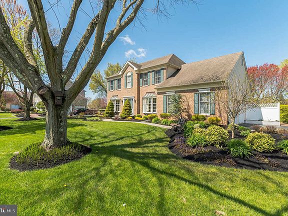 Located on a cul-de-sac, this classic four-bedroom brick front colonial boasts a front-door view of open space. As you meander up the attractive paver walkway passing the immaculate landscaping, you are greeted by a soaring two-story foyer and gleaming hardwood flooring. The formal living and dining rooms each have a bay window and elegant crown molding. The formal living room has French doors opening to the family room. A brick fireplace with raised hearth, flanked by long windows capped with half-moons, is the focal point of this family room. The trendy bright kitchen with tile backsplash, breakfast island, gas cooking and double-door pantry is the ultimate gathering place. The breakfast room has sliding glass doors opening to a spacious 36' X16' back deck overlooking a gentle sloping backyard and a row of trees. The sunny study is on the opposite side of the home, far from the busy family room, so it is a quiet location for those that work from home. Double entry doors welcome you into the master bedroom which boasts a tray ceiling and walk-in closet. A small hallway with a second vanity and an additional closet leads you into the luxurious master bathroom with soaking tub, shower stall and double sink vanity. Three additional bedrooms and hall bath with two sinks complete the 2nd floor. Noteworthy is the finished walkout basement bright with an atrium door and 3 large windows. This space provides approximately 500 sqft of additional living area and is ideal for a playroom, an exercise room, game room or perhaps an additional bedroom for extended guest visits or sleepovers. Ample additional storage can be found in the basement utility room, and a separate 9'X9' closet with shelving provides practical organized storage. Special features include hardwood gracing the floors of the foyer, kitchen, living, dining and family rooms, retractable deck awning, ample closet space and ceiling fans in every bedroom, dining room chair rail, built-in bookshelves in the basement, recessed lighting in the kitchen and family room, main floor laundry and two-car garage. Within walking distance of Hansell and George M. Bush Parks, Cold Spring Hunt is also convenient to major highways leading to Philadelphia, New Jersey and New York and is just minutes from the Doylestown train station. It is a quick ride to all the historic sight-seeing, charming shoppes and renown eateries for which Doylestown and New Hope are known. Important bonus ~ Central Bucks Schools! Neutral throughout, well-maintained and spotless, this impressive home is situated on undoubtedly one of the best lots in the neighborhood. All room measurements are approximate. Inspections are welcome but Seller will not make any repairs.