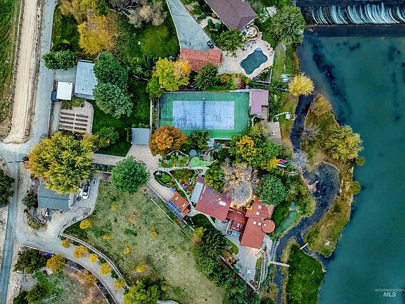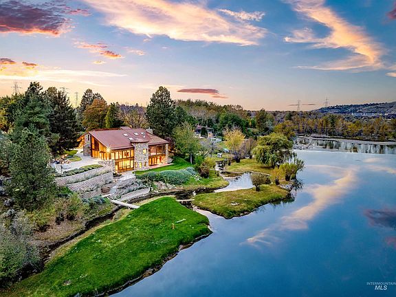 Indulge in the captivating allure of the Boise River from multiple decks and viewing areas, creating the perfect backdrop for gatherings with family and friends around the firepit or outdoor kitchen. Nestled along the picturesque banks of the Boise River, this awe-inspiring retreat situated on 1.3 acres offers a harmonious blend of natural beauty and custom details. Just 10 minutes to downtown Boise, yet a world apart. Serene water features, old-growth trees, lush planter boxes, and private tennis court punctuate the meticulously landscaped grounds, creating a tranquil and inviting outdoor haven. The stone and cedar design exudes a rustic contemporary allure, seamlessly blending with the natural surroundings. Immerse yourself in the functional sophistication of the expansive interior, featuring soaring ceilings and generous rooms accessed by a convenient elevator. Majestic great room filled with natural light from panoramic windows that frame breathtaking views of the Barber Pool Preservation Area!