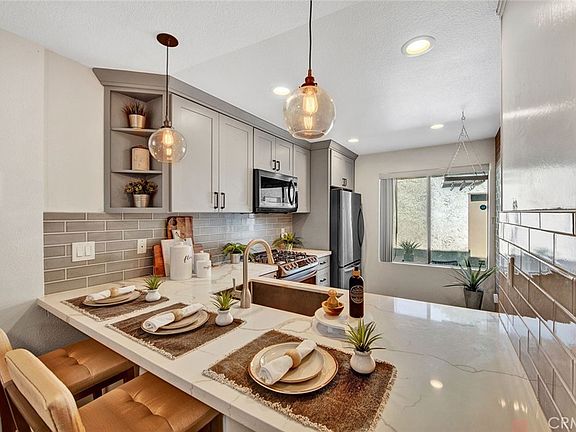 Located in the Orange Lakes Community of Orange, 4900 E Chapman Avenue #52 is a Beautiful Two Bedroom, Two Bathroom Condo with a Remodeled Kitchen and Master Bath, Two Car Garage, and Ample Natural Light Throughout. The Spacious Living Room Features a Cozy Fireplace, Dining Area, and Stunning Views of the Community’s Streams and Waterfall. The Upgraded Kitchen Features Marble Countertops, Subway Tile Backsplash, Soft-Closing Cabinets, Stainless Steel Appliances, Peninsula with Seating, and Opens to the Dining Area Which is Perfect for Entertaining. The Spacious Master Suite Enjoys a Vaulted Ceiling, Two Closets, and Access to the Lush Patio Overlooking the Streams. The Upgraded Master Bathroom Boasts Dual Vanities with Extra Built-In Cabinetry, Marble Flooring and a Walk-In Shower with a Frameless Glass Door. The Spacious Second Bedroom is Ready For An At Home Workspace with a Built-In Desk and Cabinets. Two Car Garage with Direct Access Through the Private Patio. Community Amenities include a Pool, Spa, Sauna, and Tennis Courts. This Jewel of Orange is Located Near the Highly Regarded Orange County Mining Co and Orange Hill Restaurant as well as Close Proximity to Irvine Park, Peters Canyon Park, Orange Hills Trail, El Modena Open Space and Nearby Shopping Areas Including the Orange Circle, Tustin Market Place with Easy Access to the 55, 22 and 241 Freeways. 4900 E Chapman Avenue #52 is a Must See!