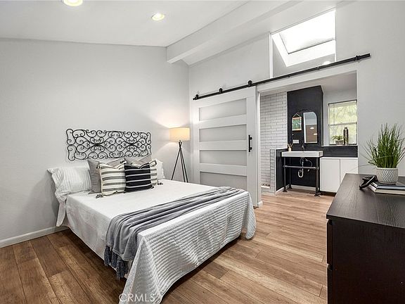 Discover your contemporary oasis with this modern loft-style condo overlooking the breathtaking Orange Lakes. Welcome to a space where modernity meets tranquility. Picture yourself lounging on the deck, savoring the sunset framed by lush trees. Upon entry, be greeted by an expansive open floor plan accentuated by a stunning wall of glass that invites the tranquil lake views indoors. Every detail has been meticulously curated to enhance your living experience. Indulge in the luxury of stainless steel kitchen appliances, complemented by soft-close drawers and cabinets. The ambiance is further elevated by wood-look laminate flooring, individually wrapped stair steps, and recessed lighting throughout. Escape to the upstairs loft, where a sliding barn door seamlessly divides the sleeping quarters from the spa-like bathroom and walk-in closet. The walk-in shower boasts rejuvenating pebble flooring, organic subway tiles, and sleek fixtures, harmonizing with the modern sink and industrial vanity. Embrace the convenience of having a space for your stackable washer and dryer, eliminating the need for community laundry facilities. Bathe in natural light streaming through the skylight, illuminating the upstairs retreat. With a 10ft. dual-paned sliding glass door leading to the deck, immerse yourself in the serenity of lakeside living. Seize the opportunity to fulfill your California dream of homeownership. This meticulously updated loft promises a contemporary lifestyle amidst nature's beauty. Your dream home awaits.