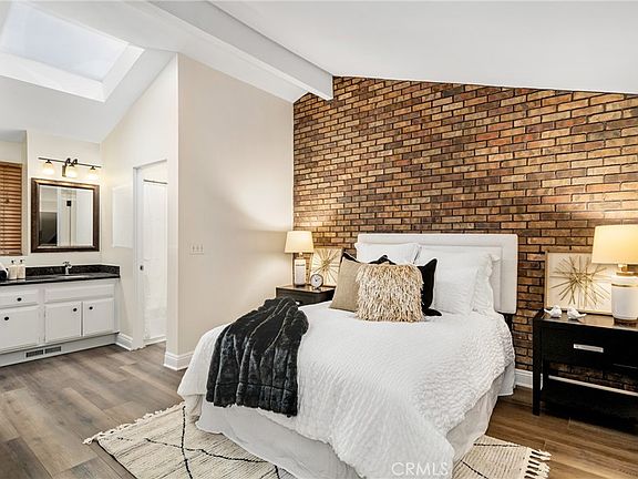 Nestled in the beautiful community of Orange Lakes, this desirable 1 Bedroom Townhome has undergone a stunning transformation, showcasing exquisite upgrades throughout. The open floorplan welcomes an abundance of natural light, accentuated by cathedral ceilings. Lux vinyl flooring has just been installed throughout the unit and it has been freshly painted. This unit shows like a New York Loft with partial brick walls, soaring ceilings and lots of light. The remodeled kitchen features a large breakfast bar, open to the Living Room with granite counters and stainless steel appliances. Upstairs a lovely 1 bedroom loft awaits overlooking a picturesque stream. The loft features a walk-in closet, and a full bath. Cozy up to the fireplace and feel like you are at a mountain retreat. Enjoy your patio and listen to the sound of the streams. Don't miss the storage unit on the patio. Property has 2 assigned parking spots. Orange Lakes is a certified wildlife habitat. Amenities include a Pool, Spa, Sauna and Tennis Courts. This property is close to Chapman University, Peters Canyon, Irvine Park, the freeways, Toll roads, shopping, restaurants, and Old Town Orange. Come see why Orange Lakes is a beautiful and serene place to call home.
