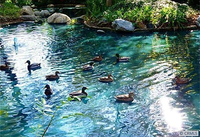 Charming lakeside development enjoys numerous mature trees and country living. This stylish one bedroom two-story loft style condo offers a quiet interior location with a beautiful view of the lake from the floor-to-ceiling glass doors/windows in the living room, which open out to its lovely deck right at the water's edge. Large loft bedroom upstairs with a remodeled bathroom with jacuzzi tub and brushed nickel fixtures (all Kohler), separate vanity, skylight and walk-in closet. In the kitchen area, near the front door, there is also a built out closet to accommodate a full-size stacked washer & dryer. The washer/dryer area is enclosed by white louver doors. No more trips to laundry mats...or lost clothing. Open kitchen has bar stool counter seating. Skylight in living room (fireplace was removed, but could be re-installed). Short distance to schools, shopping, parks and the 55 freeway. Orange Lakes Community includes pool, spa and tennis courts.