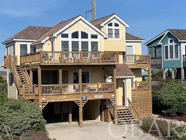 Pride and care in ownership! Conveniently located just off of the Beach Road; with a partial ocean view. The community pool is 100 paces away, with 2 public beach accesses with lifeguards available across the street and a private Village Beach access and bath house just up the street. Brand new cedar shake roof 2019 at a cost of $22,000! New windows, and the home has been freshly painted! This 4 bedroom (two of the BR's are Masters), 3 ½ bath vacation home features: community pool, private hot tub, gas fireplace, loft with game table, and lower level game room. Other features; under the counter ice, outside lighting, granite counter tops, hard wired smoke alarms, outdoor shower, fish cleaning stand, sun and covered decks, and laundry room. There are two pantry closets at the kitchen area, and two large interior owner storage closets. Appliances are all fairly new. Oven and microwave 1 year, dishwasher, refrigerator and ice maker 2-3 years old, washer and dryer around 5 years old, both HVAC systems are about 4 years old. Rental history is very strong. One of the Best lots in Seven Sisters as it looks straight out to ocean. Village at Nags Head has an an amenity package second to none and is available by separate membership. Amenities include an oceanfront Beach and Tennis Club with cafe and changing facilities, and an 18 Hole Scottish Links par 71 golf course. Other amenities that convey to homeowners are 2 soundside sailing piers, private oceanfront beach access with bath house, Village Shuttle, and 5 oceanfront beach walk ways. Regarding the location; yes the home backs to the by-pass - however it is oriented facing East and the ocean and there are no decks or outdoor spaces on the highway. Please look at the reviews online, even the ones that do comment on the highway. As you drive around the island you notice how many homes have driveways that open directly to the highway or beach road and they still rent all summer long. It is a narrow stretch of land and every home is close to some sort of road noise. This development was built in the late 90’s and of all the homes backing up to the highway, more than 50% are still original owners. This house is routinely booked 100% from mid June to the end of September, and routinely gets 4 and 5 star reviews with repeat rentals and is above $40,000 in rentals yearly. A great return for this sized home.